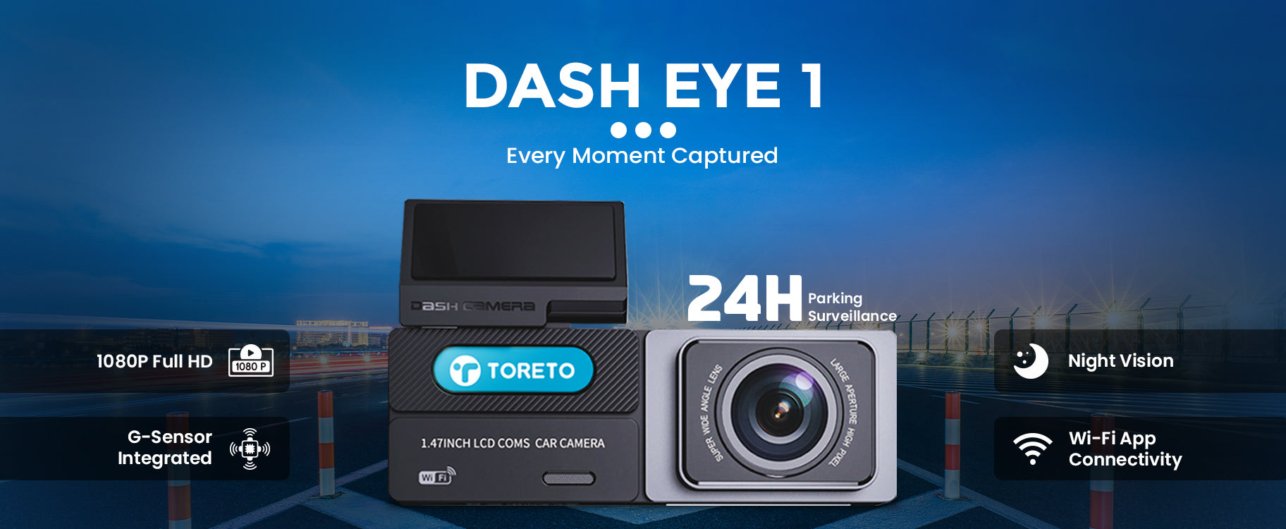 Stay safe on the road with Dash Eye 1, offering crisp 1080P Full HD video and night vision for clear footage day or night.